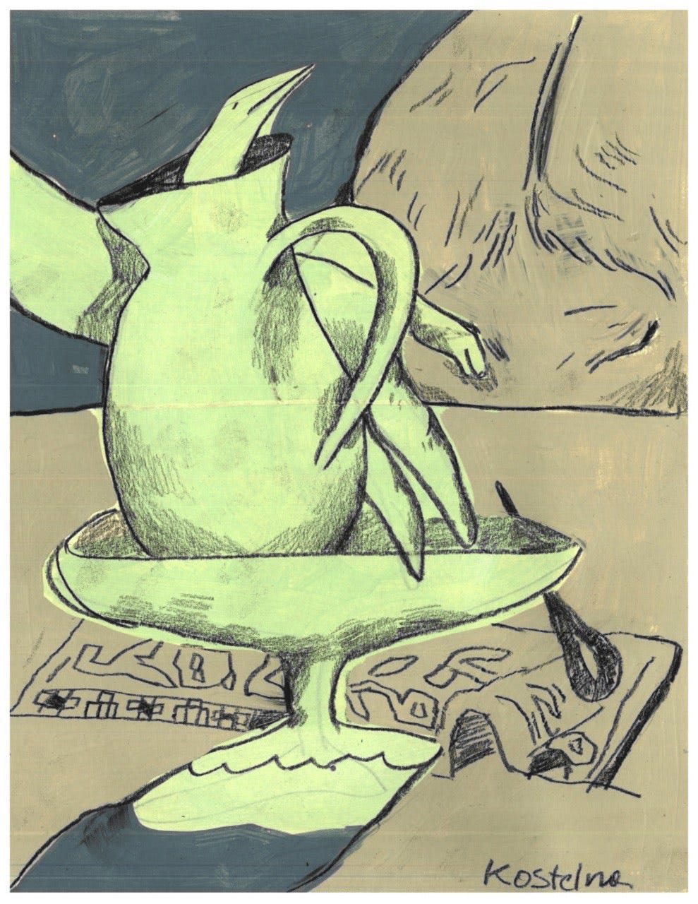 There is something unsettling about Kostelna’s pieces—her smudged lines, broken figures, blurred features, and muted, mismatched tones are at once arresting and mystifying. They are not exactly beautiful, but they’re not meant to be. As she tells me below, her work is in some ways a form of protest against the idea that all art should be pretty.